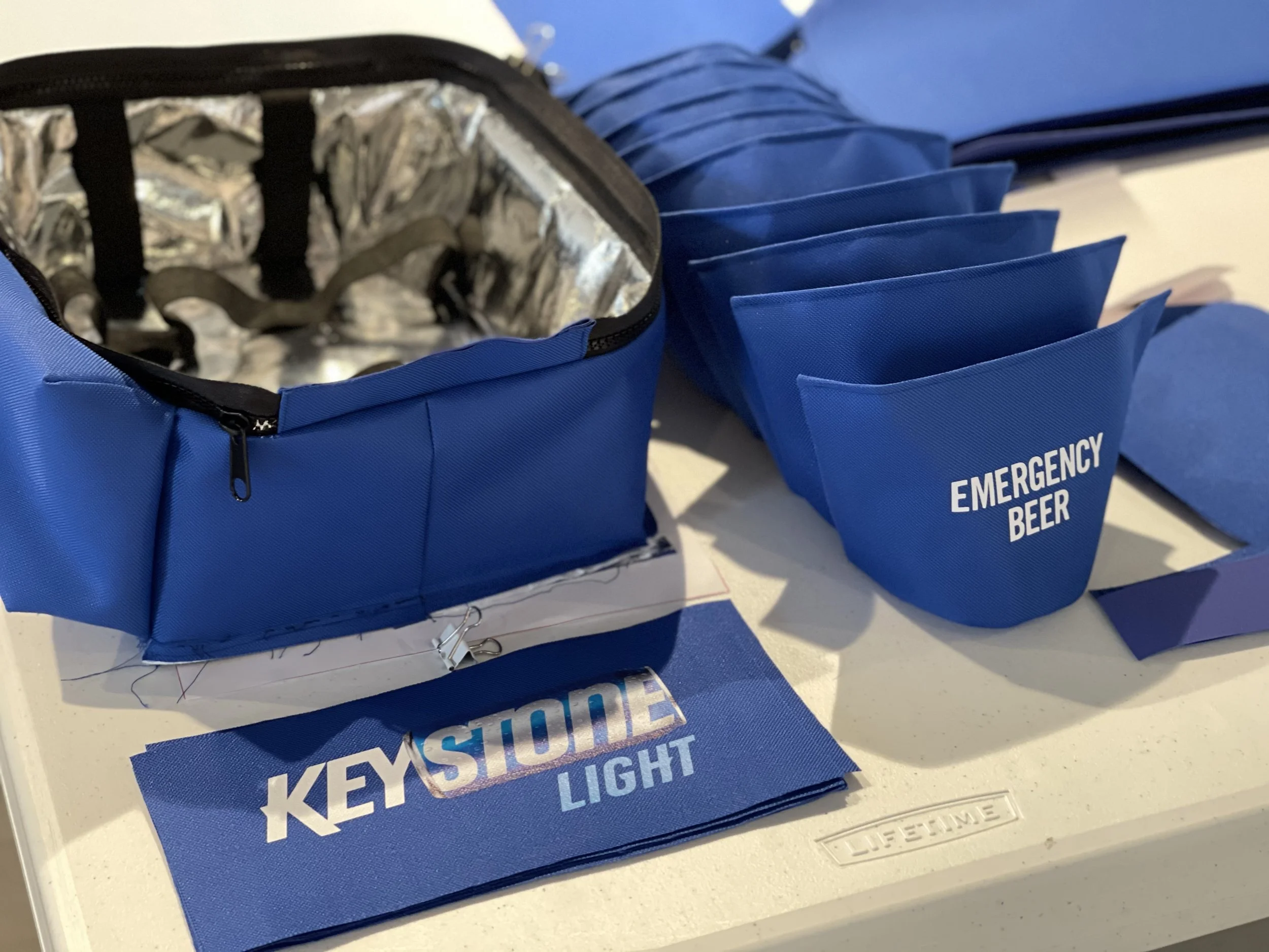 This vest was custom designed and made to include; fishing pole and lures, foldout seating, walking stick, solar power, 6-pack cooler, emergency beer holder, snack pockets, gear pockets, trail lights and bluetooth speaker. Note this video was a first run prototype and did not include any branding elements.